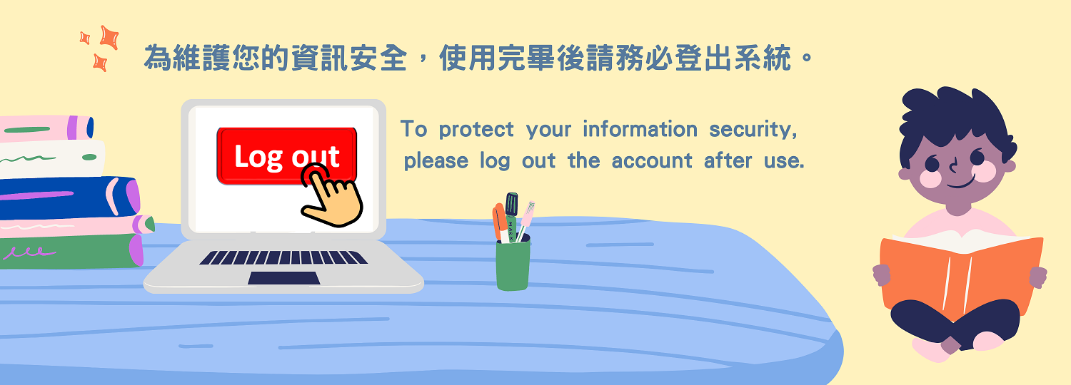 為維護您的資訊安全,使用完畢後請務必登出系統。To protect your information security, please log out the account after use.